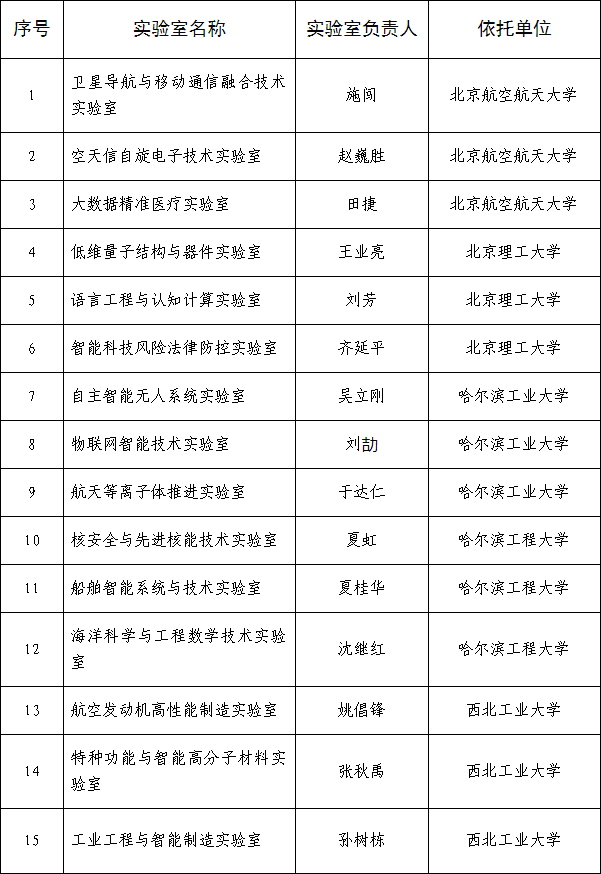 公告顯示,此次認(rèn)定的重點實驗室涉及移動通信、大數(shù)據(jù)精準(zhǔn)醫(yī)療、智能無人系統(tǒng)、物聯(lián)網(wǎng)智能技術(shù)、核安全、海洋科學(xué)、船舶智能、空間光電探測、人工智能等領(lǐng)域,依托單位主要是高校,如北京航空航天大學(xué)、北京理工大學(xué)、哈爾濱工業(yè)大學(xué)、哈爾濱工程大學(xué)、西北工業(yè)大學(xué),南京航空航天大學(xué)、南京理工大學(xué)。值得一提的是,這幾所大學(xué)共有21個實驗室入選。